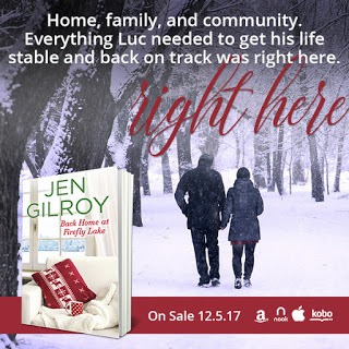 Excerpt:Luc’s heart squeezed. [Cat] was embarrassed to ask her family for help, like he’d have been embarrassed asking his. Except, that would never be an issue because he had more money than he could spend in one lifetime. Money to finance the creamery expansion his dad had talked about for years, and to send his folks on that cruise they’d hankered after but could never afford because of the cost of raising four kids and putting most of them through college. Money for everything except what mattered most—taking care of his wife and their child like he’d planned.“Pay for the hockey registration when your grant comes through.” He tried to smile. “I know you’re good for it.”“Thanks.” Cat’s voice cracked and she took one hand away from her bag to rub it across her face. “Hockey means everything to Amy. I want her to be able to play, but she’s growing so fast right now.”“Hockey’s an expensive sport.” He slid an arm around her shoulders and gave her a little squeeze. The same kind of friendly squeeze he’d given her all those times back in high school when she’d saved his butt in chemistry. Before today, however, his fingers had never tingled when he’d touched Cat. His body had never heated, either.Cat started and pulled away at the same instant he did. “Hockey can be a dangerous sport too, and now Amy will be playing with boys. She hasn’t played with boys since she was seven. She could get hurt.Like he had, hurt so bad it had ended his career. “Amy’s playing minor hockey. At her age, there is a rule about no body checking.” He tried to make his tone reassuring. “I promise I’ll keep a close eye on her.” It was his job as her coach, and he’d do the same for any kid. It had nothing to do with the strange and unexpected attraction he all of a sudden had for this woman he’d known his whole life, who he’d never really looked at until today.A woman who wasn’t Maggie. Luc’s stomach clenched in a tangled lump of guilt and grief, tied tight with a slippery ribbon of disloyalty. Maggie was never coming back, but that didn’t mean Luc could forget her. Or that he wanted to.Copyright © Back Home at Firefly Lake 2017 by Jen Gilroy