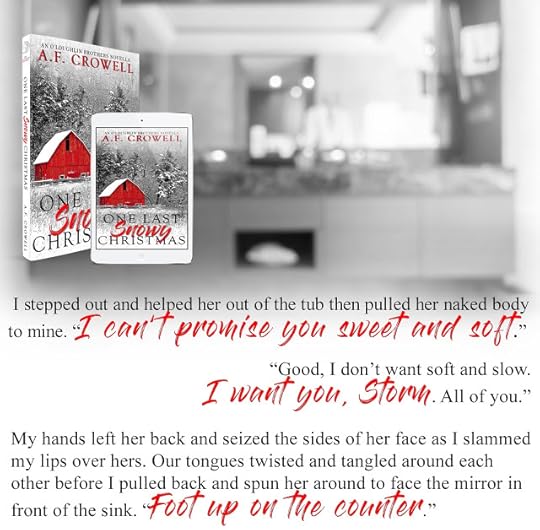 Title: One Last Snowy ChristmasSeries: An O'Loughlin Brothers NovellaAuthor: A.F. CrowellGenre: Holiday RomanceRelease Date: November 28, 2017