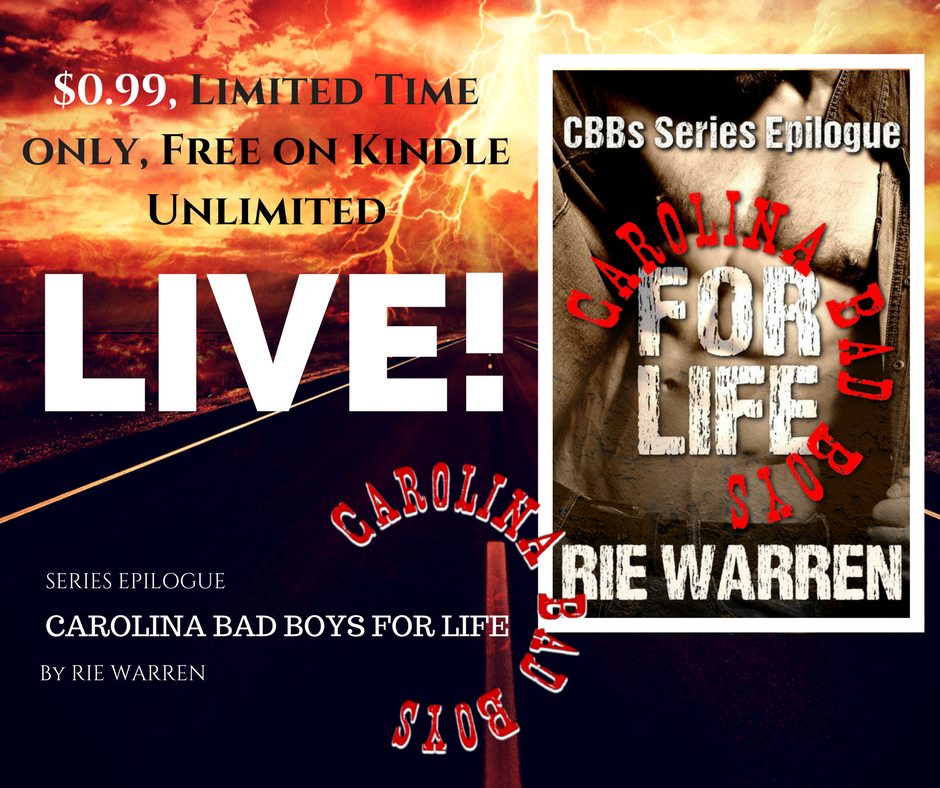 Title: Carolina Bad Boys for LifeSeries: Carolina Bad Boys #7 (The Series Epilogue)Author: Rie WarrenGenre: MC RomanceRelease Date: November 13, 2017