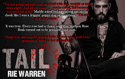 Title: TailSeries: Carolina Bad Boys #6Author: Rie WarrenGenre: MC Romantic SuspenseRelease Date: November 6, 2017