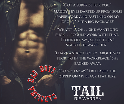 And Tail makes me want to be bad in ways I never even knew. He’s dangerously gorgeous. He’s affiliated with the same MC as my big brother. He has inked sleeves and sex on the brain and Max warned me away from him.