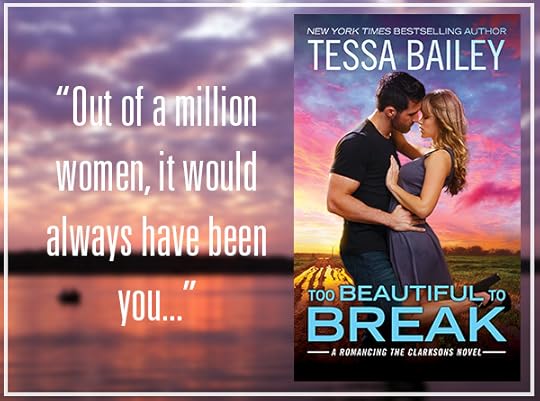 ABOUT THE BOOK Title: TOO BEAUTIFUL TO BREAKAuthor: Tessa BaileySeries: Romancing The Clarksons, #4On Sale: September 26, 2017Publisher: ForeverMass Market: $7.99 USDeBook: $5.99 USDAdd to GoodreadsA love of a lifetime . . .