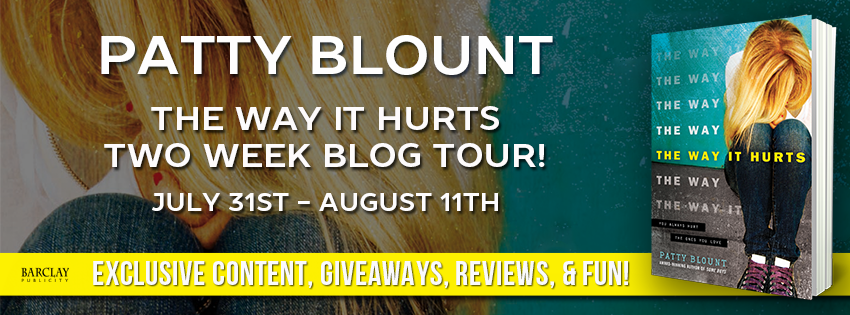 About The Way It Hurts:Title: The Way It HurtsAuthor: Patty BlountPublisher: Sourcebooks FireRelease Date: August 1, 2017Genre: Young Adult ContemporaryPages: 352 pagesFormat: Paperback and DigitalPrint ISBN: 978-1-492632-788Digital ASIN: B06XR172ZD Synopsis: There may be two sides to every story, but sometimes there's only one way to set things right...Music is Elijah's life. His band plays loud and hard, and he'll do anything to get them a big break. He needs that success to help take care of his sister, who has special needs. So he'd rather be practicing when his friends drag him to a musical in the next town...until the lead starts to sing.Kristen dreams of a career on stage like her grandmother's. She knows she needs an edge to get into a competitive theater program--and being the star in her high school musical isn't going to cut it. The applause and the attention only encourage her to work harder.Elijah can't take his eyes off of Kristen's performance, and snaps a photo of her in costume that he posts online with a comment that everybody misunderstands. It goes viral. Suddenly, Elijah and Kristen are in a new spotlight as the online backlash spins out of control. And the consequences are bigger than they both could have ever imagined because these threats don't stay online...they follow them into real life.Add to your “Want to Read” shelf: Goodreads Available at: Amazon | Barnes and Noble | Kobo | iTunes