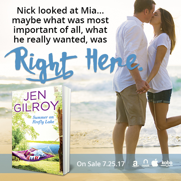About Summer on Firefly Lake (Firefly Lake #2):Title: Summer on Firefly LakeAuthor: Jen GilroyGenre: Contemporary Romance / Women’s FictionRelease Date: July 25, 2017Publisher: Forever – Grand Central PublishingSeries: Firefly LakeISBN: 9781455569601Sometimes love is better the second time around.Mia Gibbs spent her marriage putting her husband’s needs before her own. And now, after a painful divorce, she’s building a new life for herself and her two daughters back home at Firefly Lake. The last thing she needs is a man to complicate things. But former bad boy turned friend Nick McGuire has turned everything upside down.Attorney Nick McGuire wasn’t meant to be a family man. His career has always been his focus, and after taking time out to help his mother, he’s ready to get back to the city…until Mia and her daughters arrive at Firefly Lake. Mia is beautiful and intriguing, and it doesn’t take long to realize being “just friends” will never be enough. As the summer nights turn colder, Nick will have to choose between the life he’s always wanted…and the woman he can’t live without.