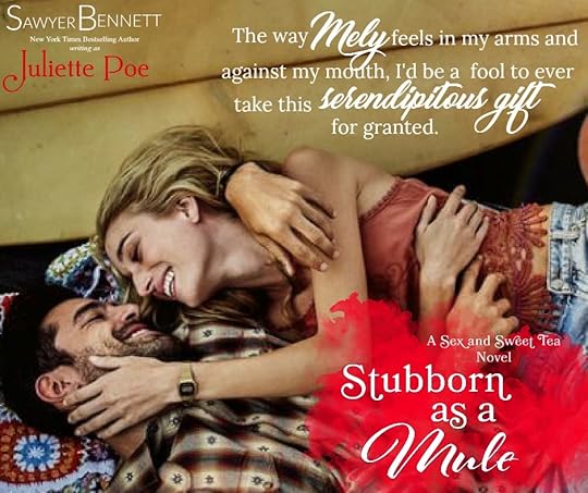 Juliette Poe is the sweet and swoony alter ego of New York Times Best Selling author, Sawyer Bennett. A fun-loving southern girl, Juliette knows the allure of sweet tea, small towns, and long summer nights, that some of the best dates end sitting on the front porch swing, and that family is top priority. She brings love in the south to life in her debut series, Sex & Sweet Tea. When Juliette isn’t delivering the sweetest kind of romance, she’s teaching her southern belle daughter the fine art of fishing, the importance of wearing Chucks, and the endless possibilities of a vivid imagination. Twitter |Facebook | Instagram