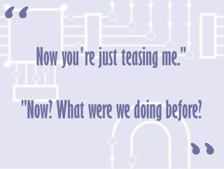 *Ahem* For me, teasing lies somewhere between flirting and seduction. It's a taste of what's to come, a kiss, a whisper, a brush of warm breath on the skin, that may or may not lead further. It heightens the anticipation, it stretches out the moment. That feather-light touch followed by pulling back, a wink, and a look that promises more, but not until later, can send one's pulse racing to glorious places.