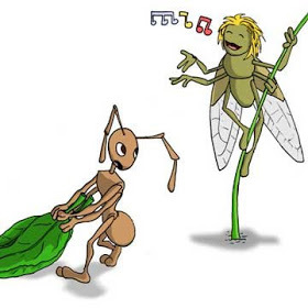 Em contraponto, sempre nos foi incutido um certo desdém pela conduta boémia da cigarra que preguiçando pelos prados cantava dia e noite.Uma das recordações mais antigas de raciocínio em tenra infância que tenho, prende-se com esta fábula.