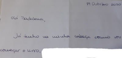 Escrevi exactamente há um ano esta carta. Sendo fiel à essência do livro e tendo começado esta ideia numa longa conversa com a Madalena, senti um ímpeto de lhe escrever. O livro está pronto! Está a ser tratado com muito carinho para chegar às vossas mãos ainda antes deste Natal. Será o meu sétimo "filho" e revelo hoje o seu título: