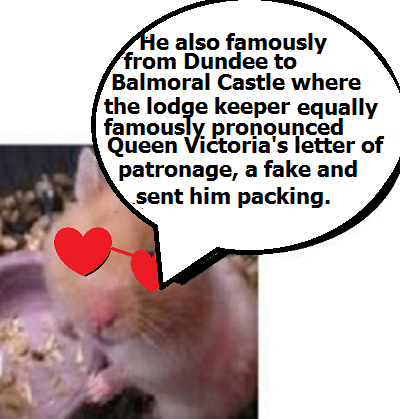 …….’When I go to Ireland, they won’t treat me as I was treated in New York. In the streets there when they looked at my poems with the Royal coat of arms, printed on the top, the Yankies shouted ‘To the deuce with that.’ ………..W McGonagall. ….