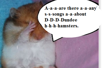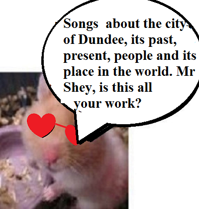 John Quinn –-okay guys don’t fight amongst yourselves. Of course I didn’t overlook it but the fact was, there were no Dundee hamsters that..that I knew of. The songs are all about different things. And people, people who were players in the city in some way, for example Jim Maclean, a Dundee footballer and Dundee United football manager, who put Dundee on the world stage, as you can see