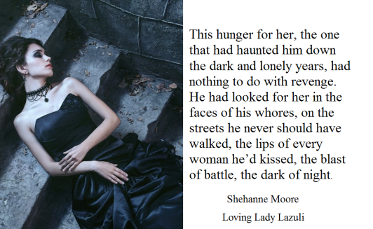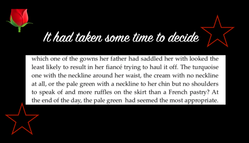 This fiery, passionate romance thrills without much graphic reference. True, Lady Kara wears a see through gown, revealed at the top of the story. However, it’s not her choice. She makes many choices, good and bad, but her gowns are imposed by her vile father.