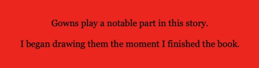 You can read my review, some Q&A with Shehanne and see the gown drawings by clicking on my above rendition of Destiny