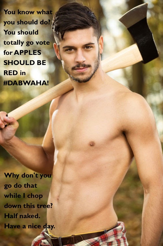 1. In completely unexpected news, APPLES SHOULD BE RED is on the novella list for the DABWAHA contest sponsored by Dear Author and Smart Bitches. I am shocked and thrilled and extremely thankful to all of the readers who nominated my book.