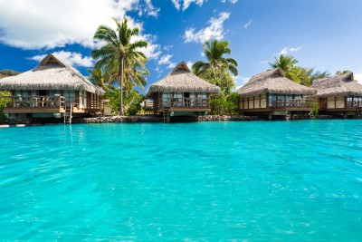 And he's our own personal cabana boy. Yes! And we're staying in one of these cool beach houses over the water...