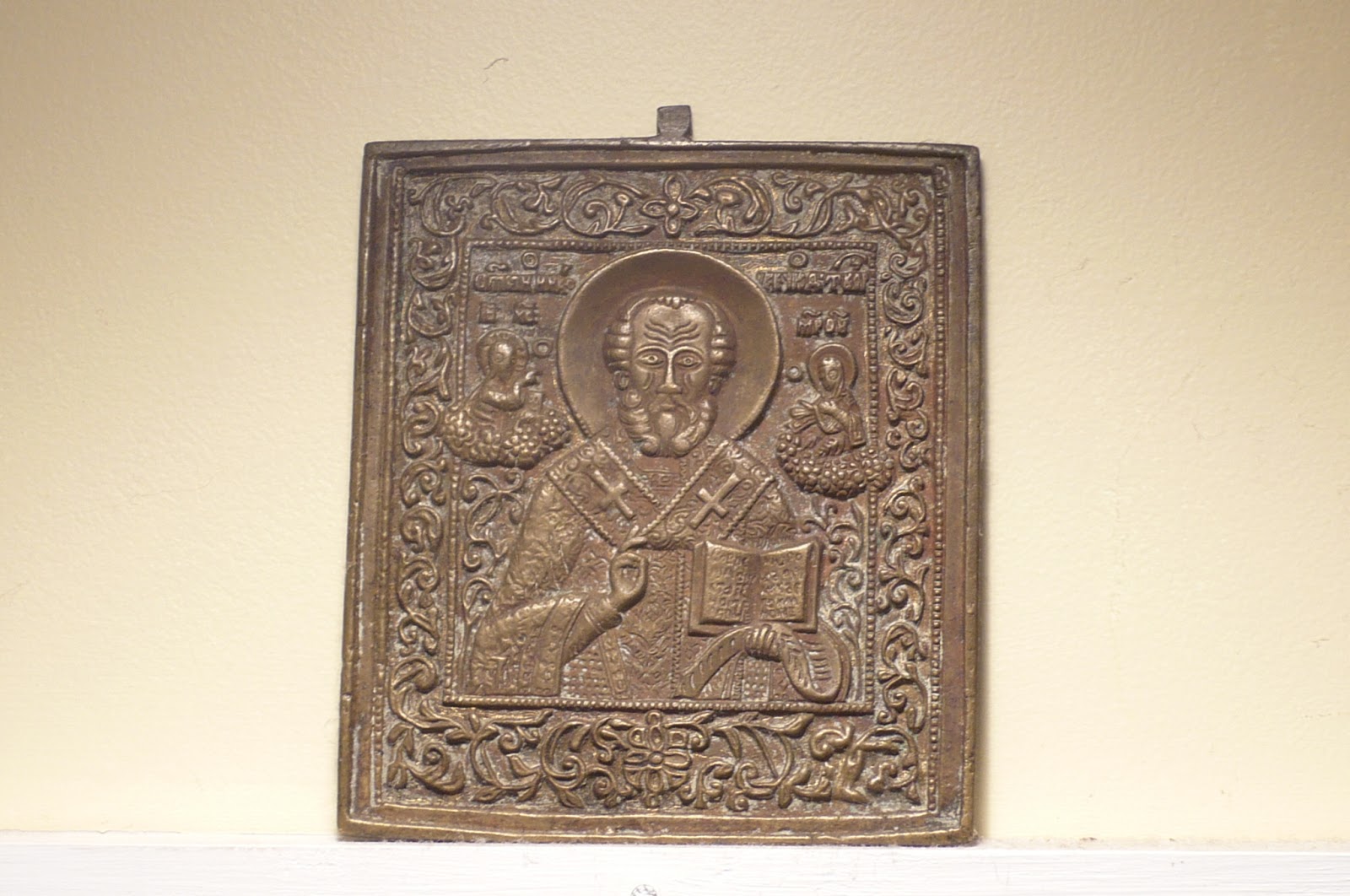 Most mornings as I get the kids ready for school, swig down my heart meds with a cup of coffee, and feed the weenie dog, I forget about this guy. Saint Nicholas. He is perched above my kitchen window, looking down on us every morning. Every afternoon. Every evening.