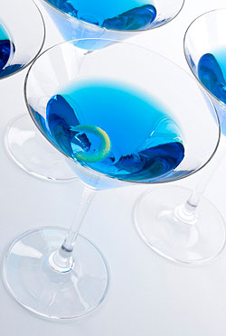 1 and 1/2 oz vodka1/2 oz triple sec1/4 oz blue CuracaoOrange peel for garnish