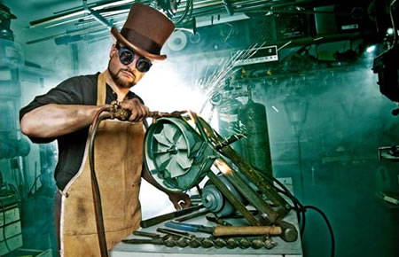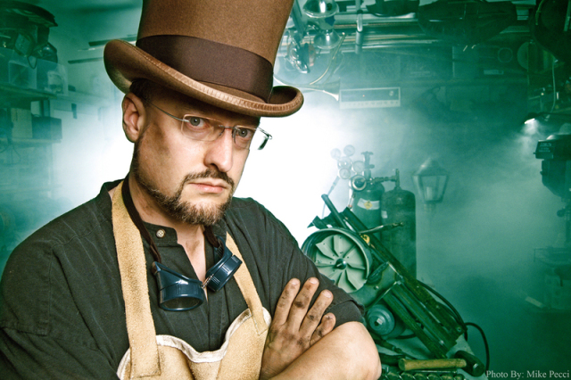 I just finished reading The Blushing Bounder by Meljean Brook in Wild And Steamy . I forgot how totally cool her steampunk vision is, and now I can't wait to dig into Heart Of Steel , which is my next read. I decided to search for some cool steampunky beards, and lo and behold, I found Mr. Steampunk himself, Jake Von Slatt. This guy is obsessed with steampunk culture...in a good way. He has a website called The Steampunk Workshop , which is funky, inspired and filled with wacky inventions. I would have to say that goggles and beards are an excellent combination!