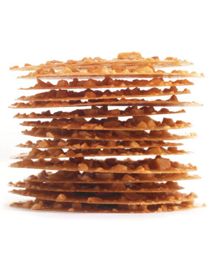 Mix in order, stir well, drop by tsp on tin foil covered cookie sheets or Teflon cookie sheets. Bake at 350 for 10 minutes until there is a dark ring around outer edge. (Penny's tip: Make sure cookies are very flat, and well-browned. If you remove them too early, they will stick to the mother f*ckin' cookie sheet and you will cuss like a sailor). COOL COMPLETELY before picking off tin foil. Then you sort of peel away the tin foil and the cookies are left behind.