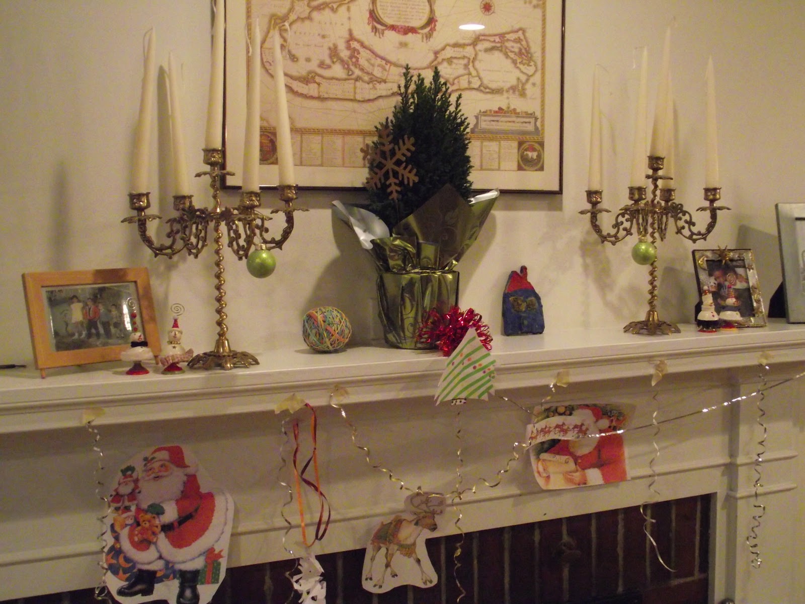 Frustrated by the apparent lack of holiday doo-dads in our house, my daughter Natty took it upon herself to decorate the living room. She made paper snowflakes, paper chains, curling ribbons, and printed up Santas from the web. I'm not sure what a rubber band ball has to do with Christmas, but it's an interesting look. She's so helpful!