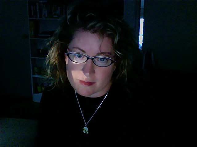 P.S. Here is a photo of me wearing one of my new Etsy purchases, a bookworm pendant. Hee!