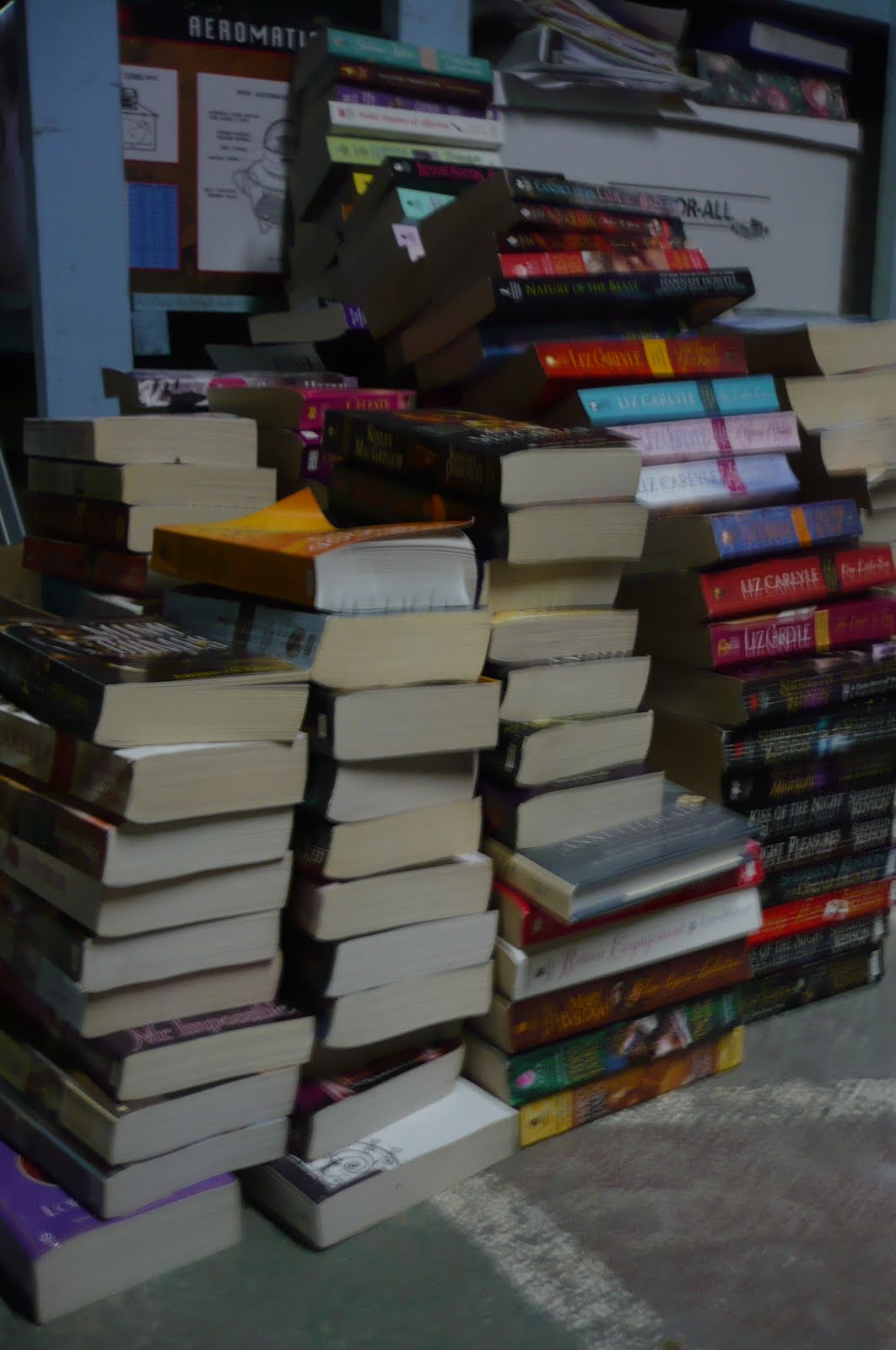 3.) My purge of old print romance novels will be taking place next week. I'm hauling about 600 old books to the used book store. I'll post pics of the traumatic event. Good times.....not.