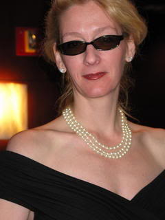 JR Ward, creator of trash-talking, super-pumped, highly sexed, killing machines. Would she wear shit-kickers like the brothers? Black leather pants and a nice collection of tats? I almost fell out of a chair when I saw her bleached-blond hair in a bun, strands of pearls around her neck, and some sunglasses straight out of Risky Business. Because nothing says "I'm a bad-ass urban fantasy writer" more than pearls, right? Her elegant country-club attire makes her look like a model for a Talbot's catalogue.
