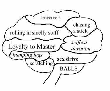 On The Fly by Jillian Brookes-Ward is not a romance novel. It's not erotica. It actually doesn't have much of a plot. There's no big adventure, or character arc, or profound resolution at the end of the book. It's a portrait of a guy. That's it. (With a bit of a cool paranormal twist at the end.) You know those cartoons "Diagram Of A Dog's Brain?" Here's an example....