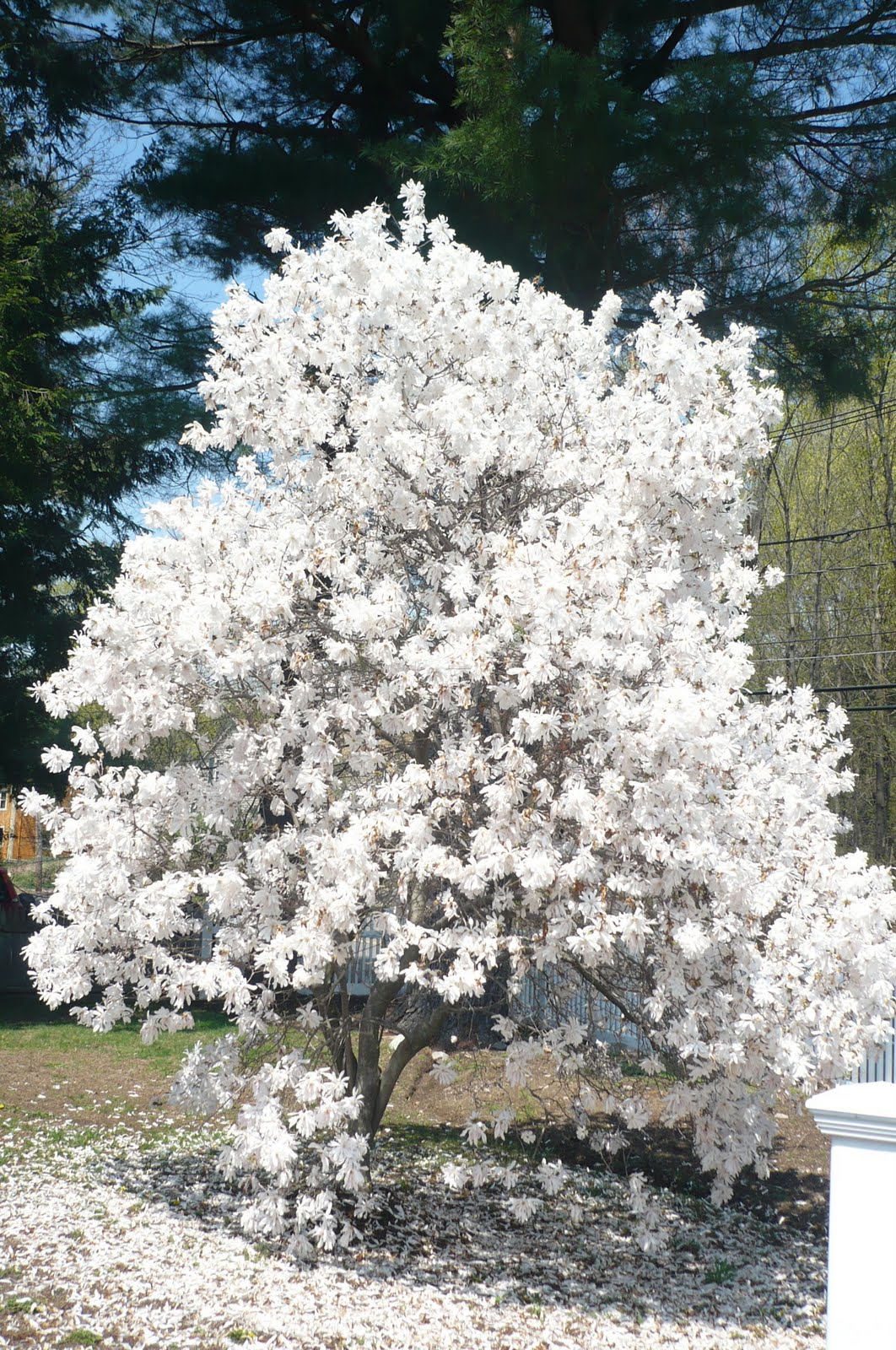 First sign of Spring at my house....the star magnolia (Magnolia stellata). This tree got chopped in half by a dumpster when we were doing our house renovation, but it's still kickin'!!! In fact, it looks gorgeous every spring, covered with sweetly scented blossoms. I just love it.