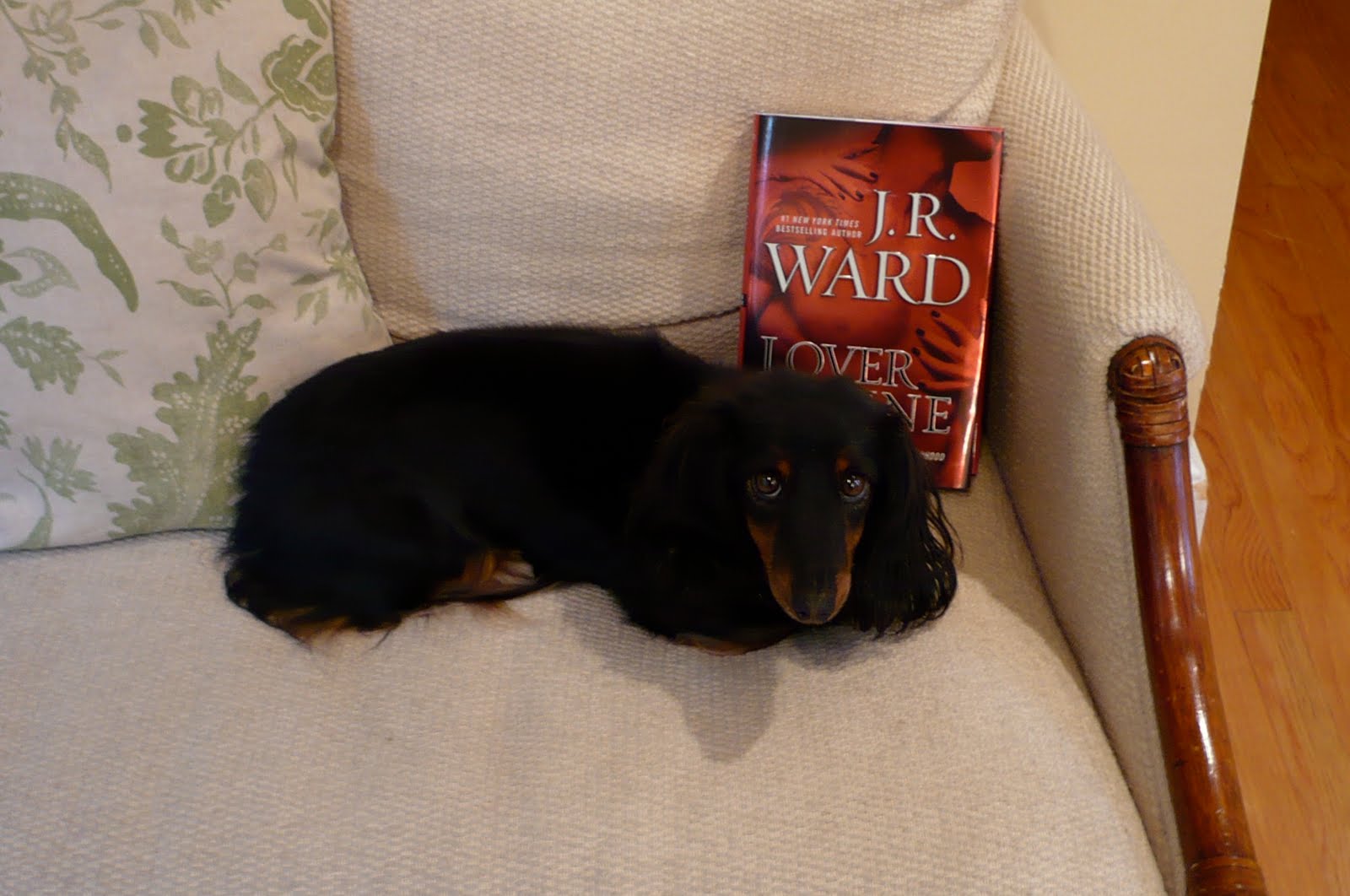 The UPS man finally delivered my book! Yee haw! Unfortunately, my dachshund Lucy is guarding it with her life. I guess she wants to read it first. She said I don't deserve to read it since I've been harshing on John Matthew for the past year, and Xhex is her hero.Well, hell.