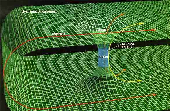 Perhaps the most famous AI introduced so far is Merlin, the damaged American-European Alliance Mainframe that has come to believe it is the computerised consciousness of the mythological wizard. He is software, able to move between different hardware at will (such as the Tor, Arthur's ship the Vanguard or the Hive ship itself).As well as Merlin, the Teleri have also admitted to using a variety of AI's on their ships. These help coordinate the communications between remote pilots and the small fighter craft they control, or regulate the relevant information displayed for the bridge officers to interpret and act upon. They are not known to act autonomously and move between ships or systems at will. PropulsionThe ships in both the Mori and Teleri fleets use a 'Gravity Engine' for propulsion. The gravity engine allows for sub-light speed travel as well as 'jump' travel, that is travelling large distances in the blink of an eye.Both species have learnt to manipulate gravity, not only using it to provide artificial gravity to the various levels on their ship, but also use it to distort spacetime in order to move. They do this using a fictional ore called gralitanium (the same material Adam 359 and Orlac 552 were required to mine on the asteroid tethered beneath the Hive ship in X-Calibur: The Return).Once refined, the ore has unique properties that allow the manipulation of gravity. For sub-light travel, the gravity engines distort local spacetime, causing ripples (gravitational waves) in the surrounding space. The ships then 'ride' these ripples like a ship on the ocean.For jump travel, the gravity engines manipulate spacetime to the point where it bends, connecting two points of the universe by an Einstein-Rosen bridge, or wormhole. This allows almost instantaneous travel between two points, one greatly distant from the other.