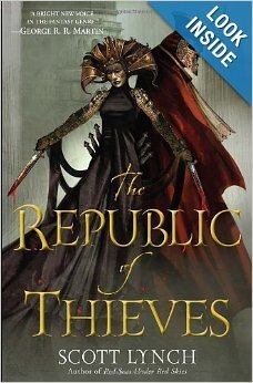 The book in question is Scott Lynch’s The Republic of Thieves, the third in the purported Gentleman Bastards cycle. This is the third book after the exceptional Lies of Locke Lamora, and the problematic but fascinating Red Seas Under Red Skies. I will be discussing plot details and spoilers henceforth for all three books. SPOILER FREE: Pointless to read if you haven’t read the first two. If you have, you’re going to read it anyway, if for no other reason to see how the cliffhanger at the end of Red Seas is resolved and to finally meet the illusive Sabetha.