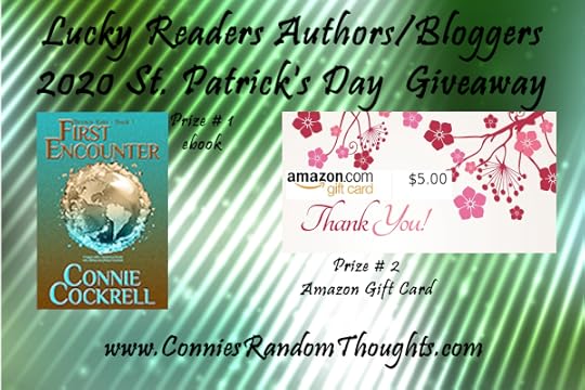 Hooray! The St. Patrick Day giveaway is now live! This is one of our shortest giveaways so be sure to click on the link right away. As always, we ask that to win, you follow us on one or more of several social media, or our newsletters, or our websites. You don’t have to join all of them, but to find out more about the many wonderful authors, you’ll want to do that. Here’s the link. https://conniesrandomthoughts.com/giveaways-and-prizes/ or go to https://www.rafflecopter.com/rafl/display/2703c98f110/ Sign up today!
