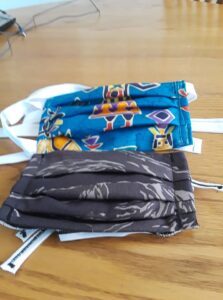 Hubby asked me to make him a mask to wear out in public. So Friday and Saturday I did. It took me three hours to make two camo masks, one for my husband and one for my daughter’s room mate. The next day, I made two more, one for me and one for my daughter. The second time around it went a lot faster. These pleated masks have a pocket to put a filter in them. My sister-in-law, the nurse, told me about these and she uses the best hepa furnace filters she can find to put in the pocket. So, anyway, they’re done.