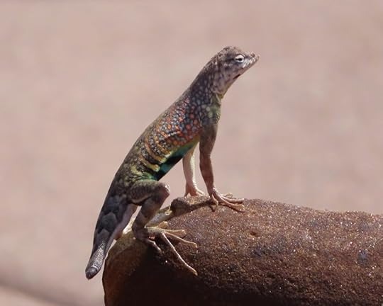 Our front yard lizard, an earless lizard, seems to have lost part of his tail. I’ve shown him before—a handsome fellow, but life out in the yard is tough. I’m happy to see he won his battle and is free to continue to sun himself on his favorite rock.