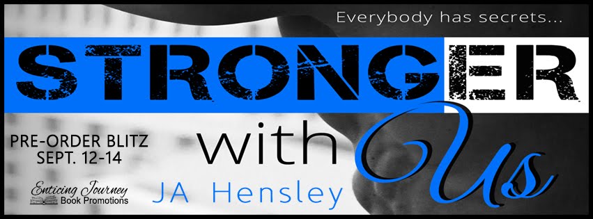 Title: Stronger With Us Series: Strength Series #3 Author: JA Hensley Genre: Contemporary Romance Release Date: September 18, 2016 Cover Photo: Eric David Battershell Cover Model: Burton Hughes Cover Design: Kate Roth