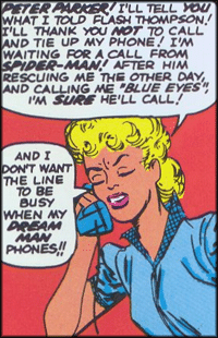 J. Jonah Jameson's secretary, Betty Brant, who has a little thing for the younger, bookish Peter, thinks it was a great idea. Peter, who is learning to be something of flirt, tells Betty "I sure wish you were the publisher, instead of just being his secretary!" as he makes his rakish exit. These two kids are dancing closer and closer!