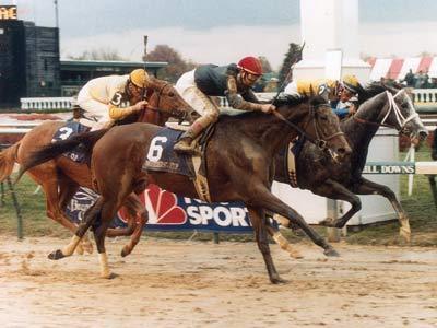 Personal Ensign runs down Winning Colors in Breeders' Cup Distaff in 1988.