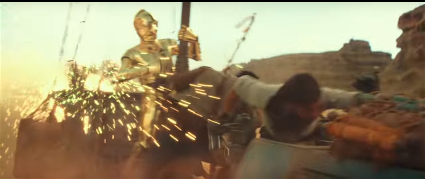 The teaser opens with Rey hanging out on a desert planet. Which desert planet? There are so many options. Your first instinct is to guess Tatooine. They'll want to revisit Luke's or Ben's old place, right? Or maybe ever Jakku? Rey certainly wants to go back there to see if her parents checked in. No.