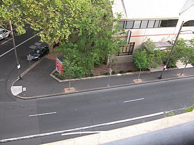 And yet, as I look over my balcony down to Pyrmont Bridge Road – a main thoroughfare that should be chokka with buses and general traffic (you’ve only got the far half of it: I’m a really shithouse photographer) as everyone is on his/her way to work, what do I see …?