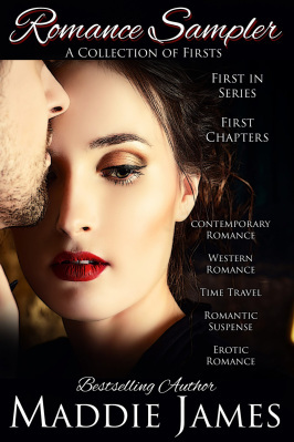 This Romance Sampler is a collection of firsts–three first in series complete novellas or novels, plus sample first chapters of some of my single title works. I’ve also provided a first “sneak peek” into an upcoming novel, yet to be released, and an erotic romance novella that you can find only in this collection (not yet released elsewhere!).