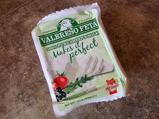 I only eat non-cow dairy. Although feta cheese is traditionally made with sheep's milk and maybe some goat's milk, you can find lots of feta now made from cow's milk... tsk tsk. Check when you order something with feta cheese at a restaurant. It might not be what you think.I love the Valbreso Feta at Costco imported from France (pictured left). I cut it up into slabs and freeze each one. I don't eat enough to use the whole brick before it turns too soft to crumble. If you're looking for real feta, don't buy the large container of feta next to the Valbreso at Costco, it's cow's milk.