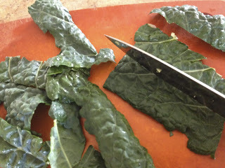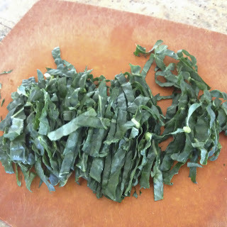 And there you have it. Julienned strips of kale ready for adding to soups or salads.