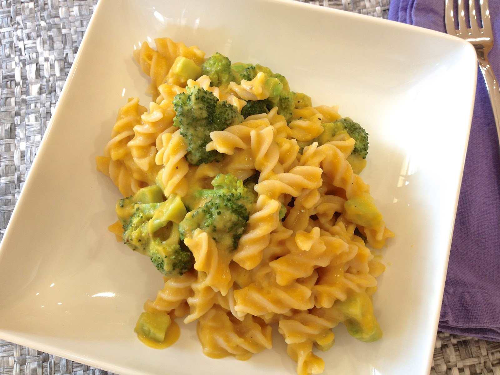 Prep and cook the butternut squash in a covered dish in the oven at 350º. I use a toaster oven. It's more efficient than heating up your full-size oven. Once the squash is cooked enough to process into a creamy sauce, transfer to a blender (or use emersion blender). Crush garlic cloves and add to squash with "milk," nutritional yeast, salt and garlic powder. Process until smooth and creamy.