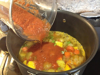 4. Blend tomatoes, seasonings and dates in blender, then add to pot.