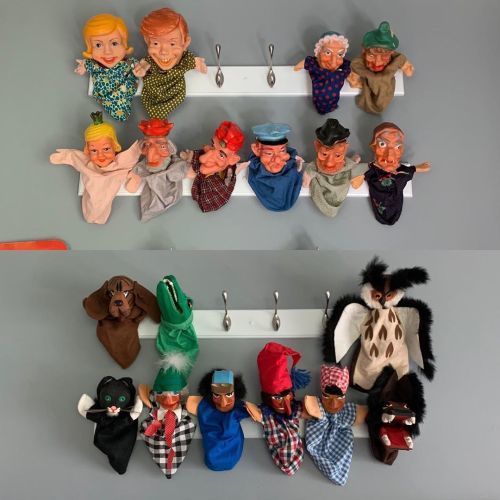 Finally have a system to display my old childhood puppets (from toy store in Heidelberg) and German puppets from my brother. #vintagepuppets #officecleaning #officeorganization