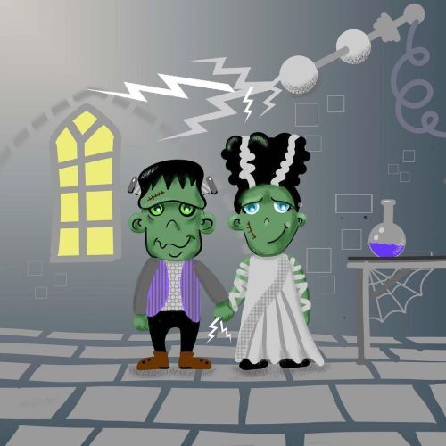 #frankenstein #inktober2021spark #inktober2021 #digitalillustration #childrensbookillustration #marriageadvice #frightfall2021 #retroaesthetic #retrohalloween #brideoffrankenstein #spark