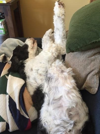 My writing partner is not exactly inspiring me today. She switched from my left side to my right side and assumed the same unladylike Superdog pose. But she is keeping me warm. #iamwriting #oldenglishsheepdog