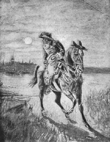 From The Paul Revere Album (1903)Midway to Concord the three riders encountered a British patrol. Prescott and Dawes managed to escape. Revere was captured and held prisoner for a short period of time. In his account of the incident Revere says, “I saw four of them [British soldiers], who rode up to me, with their pistols, in their hands, said [goddamn] you stop if you go an inch further, you are a dead man.” When questioned, Revere spilled the beans telling the British he had been alerting the countryside to their coming. Hard as it is to believe the British released Revere, a self-confessed spy, less than an hour later.