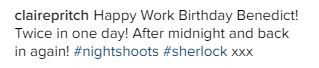 Claire Pritchard and Mark Gatiss both told us that they were off to a night shoot.