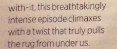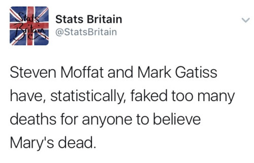 The final question is to do with the next two episodes: will we see a second burthen of the case in TAB, with Mary faking her death only to return to kill her husband? Will the entirety of T6T be born again, beginning with a second visit to the baby’s actual birth and retelling the truth of story we’ve just seen?